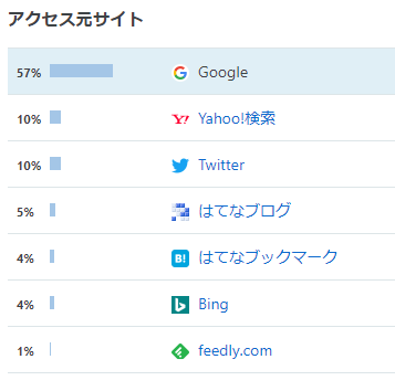最近「google、yahoo!」ひとり勝ちなアクセス無くなってきたんよ。以前は検索経由が両方足して90パーセント以上なことがしょっちゅうあったしね。おいら、はてな住人なのにブクマ経由はおろかはてブロ経由もないの?と落ち込んでいたが。